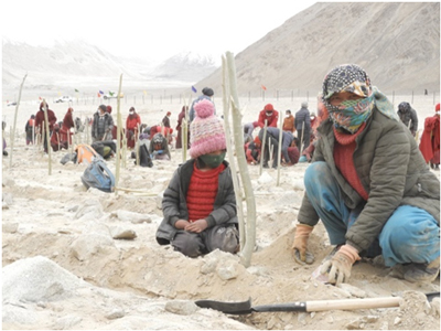 With transiting local livelihood preferences and climatic conditions, plantating is being carried out across eastern ends of Ladakh, mainly in the areas of in Durbuk, Tangtse...